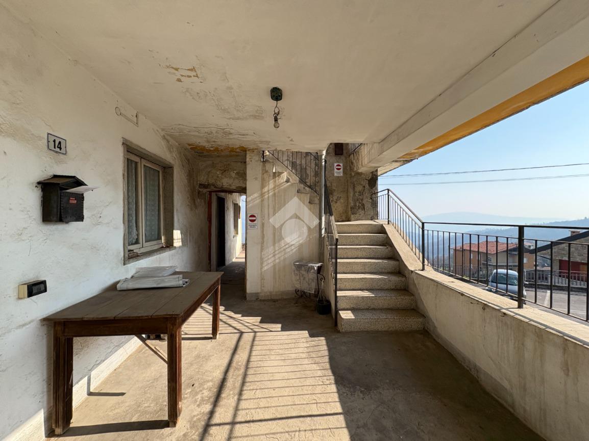Al piano superiore si apre la parte più valorizzata della casa: un ampio terrazzo dal quale si gode una piacevole vista lago, elemento che dona luminosità e fascino all’abitazione. Su questo livello troviamo inoltre una zona giorno con soggiorno e cucina open space, una camera matrimoniale e un bagno, ambienti che si presentano in condizioni più curate rispetto al resto dell’immobile.