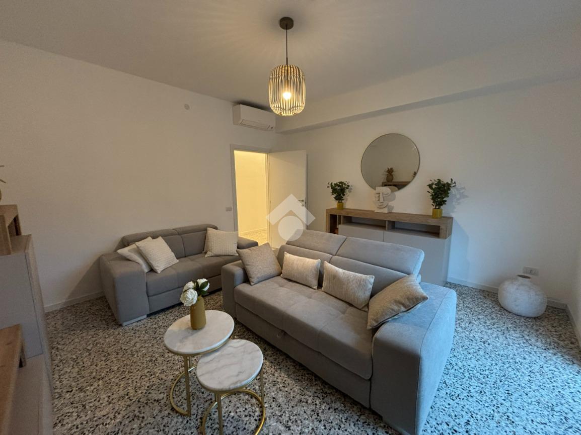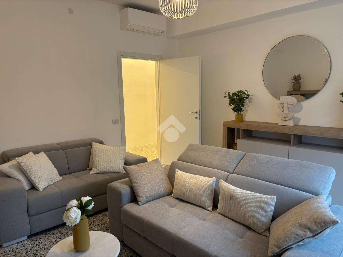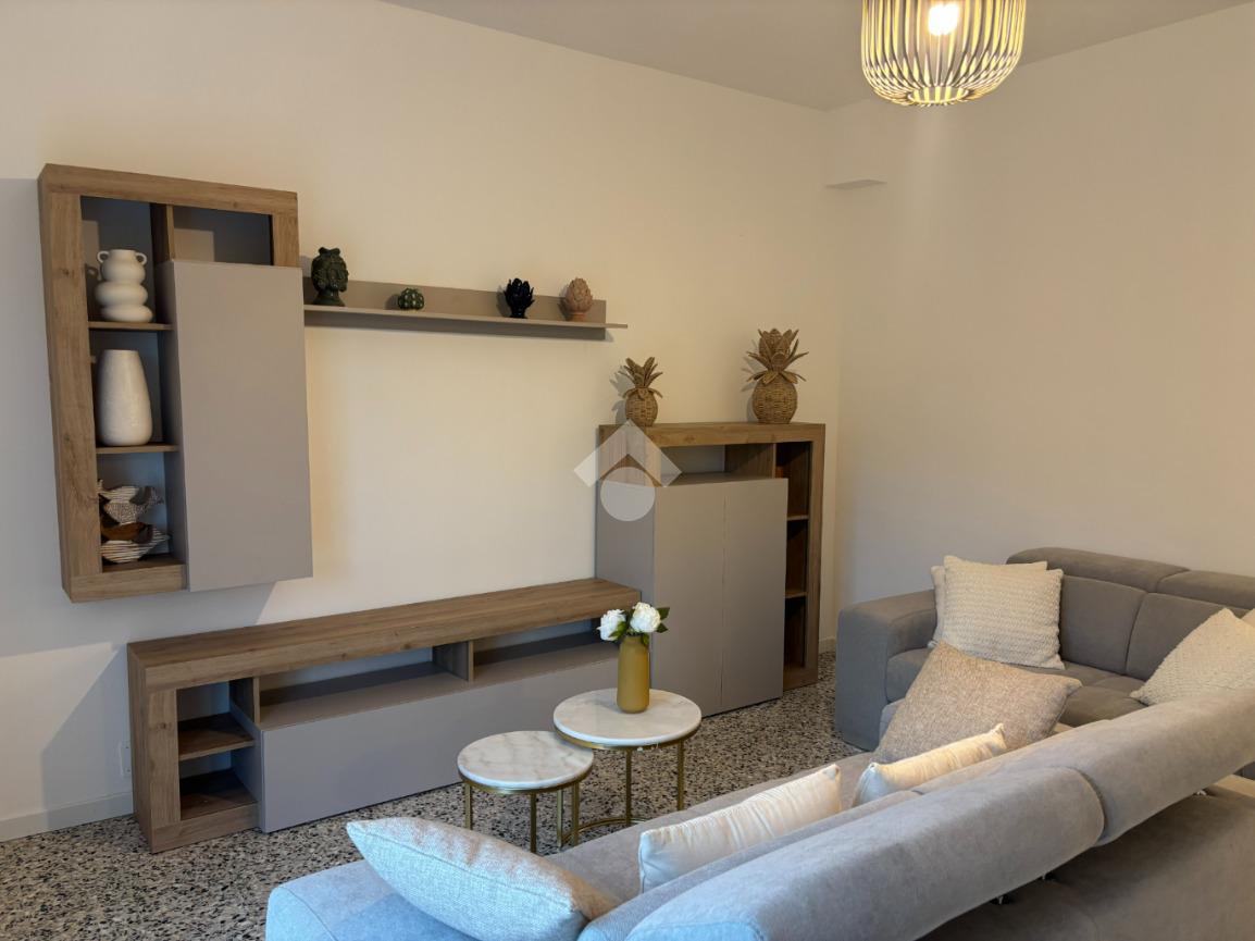 L'appartamento è composto da un ingresso con disimpegno, un luminoso soggiorno con accesso diretto al balcone, cucina separata, locale caldaia/ripostiglio, bagno finestrato con doccia e due camere matrimoniali, entrambe di generose dimensioni. Gli spazi interni sono arredati con gusto, con mobili nuovi ed eleganti che conferiscono all’ambiente uno stile moderno e accogliente. I serramenti sono di ottima qualità, garantendo comfort e isolamento.