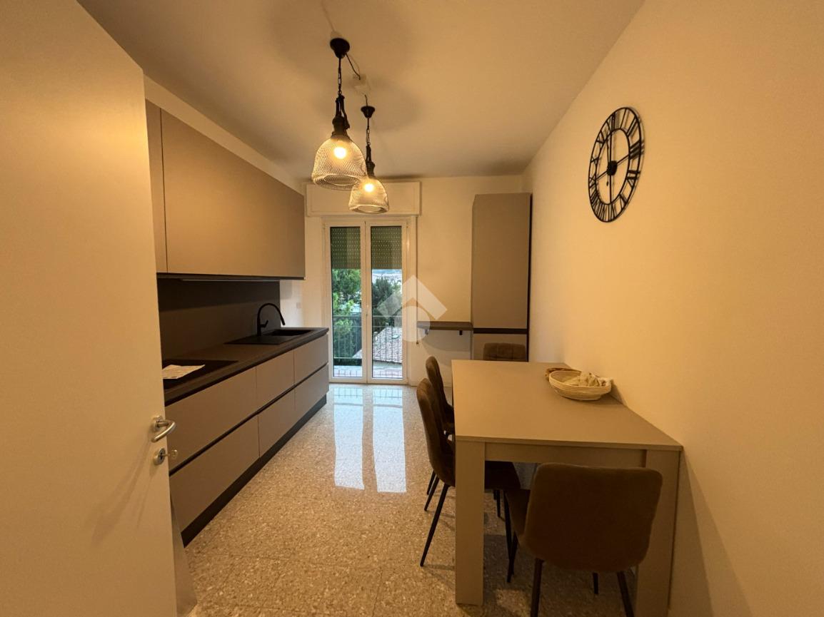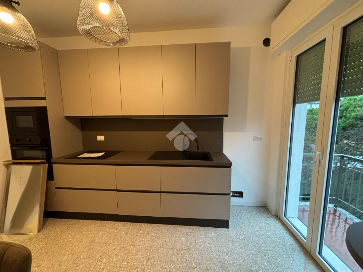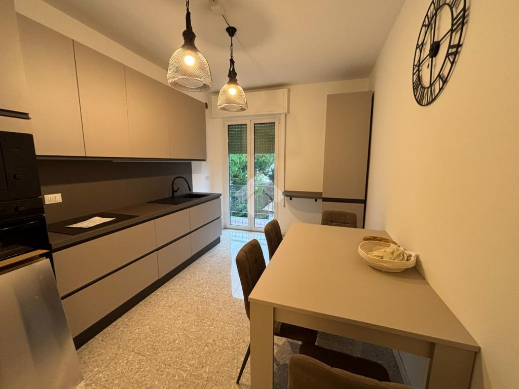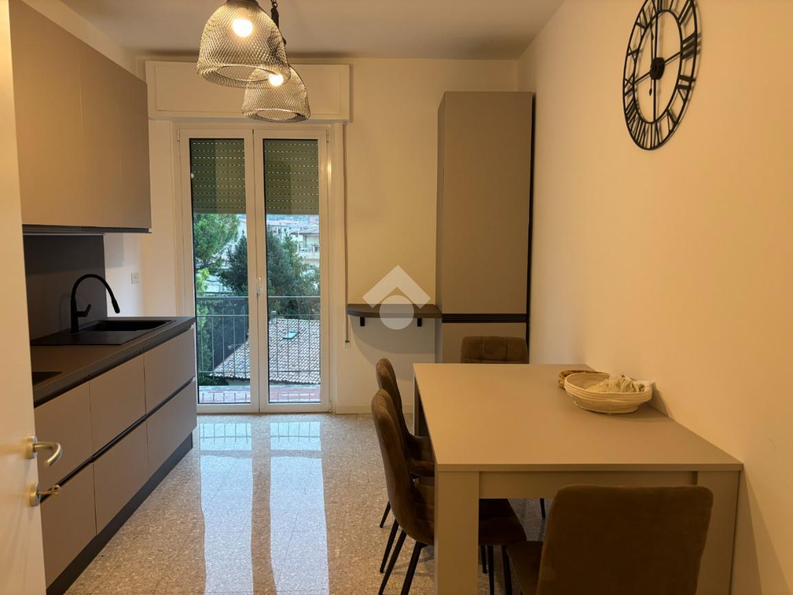 L'appartamento è composto da un ingresso con disimpegno, un luminoso soggiorno con accesso diretto al balcone, cucina separata, locale caldaia/ripostiglio, bagno finestrato con doccia e due camere matrimoniali, entrambe di generose dimensioni. Gli spazi interni sono arredati con gusto, con mobili nuovi ed eleganti che conferiscono all’ambiente uno stile moderno e accogliente. I serramenti sono di ottima qualità, garantendo comfort e isolamento.