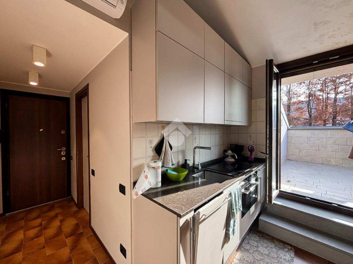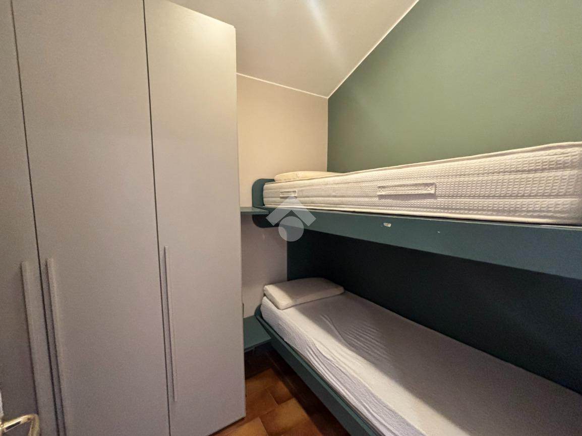 L’abitazione si caratterizza per una bella zona giorno, ariosa e luminosa, con accesso diretto a un terrazzino vivibile dal quale si gode di una magnifica vista lago; inoltre, dispone di camera matrimoniale, una cameretta e un bagno cieco.