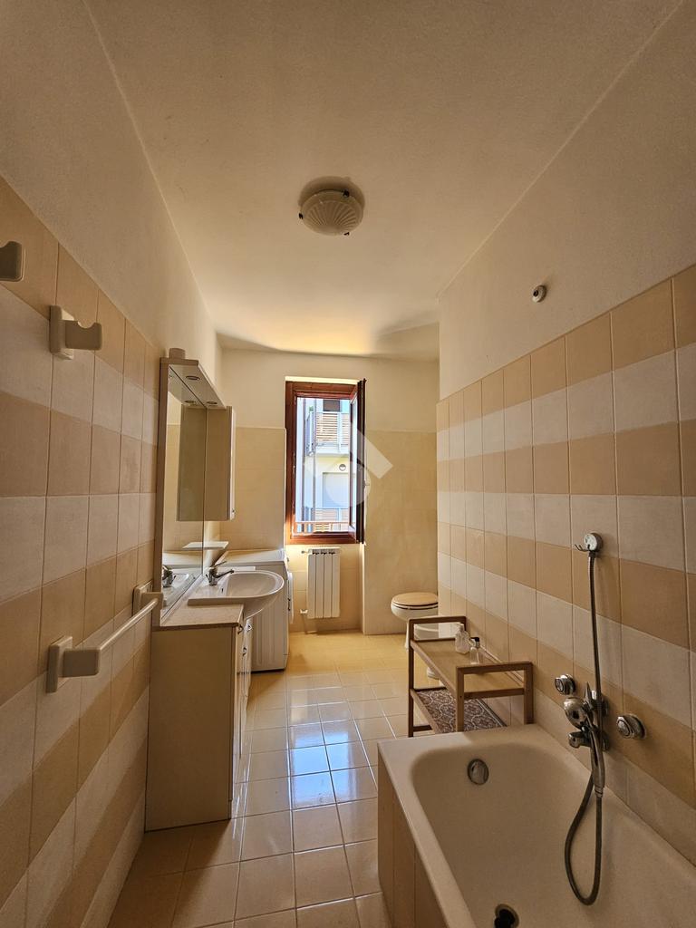 La zona notte è caratterizzata da una camera matrimoniale, anch'essa con balcone privato. Il bagno finestrato, completo di vasca, è funzionale e ben distribuito.