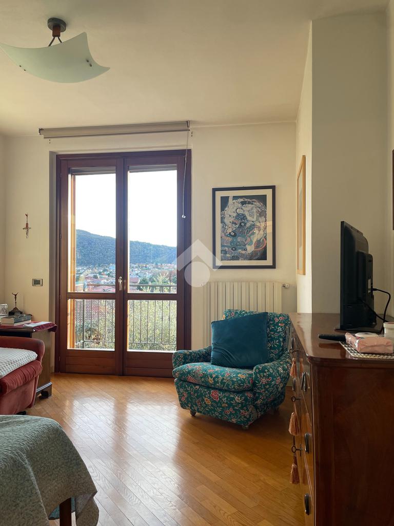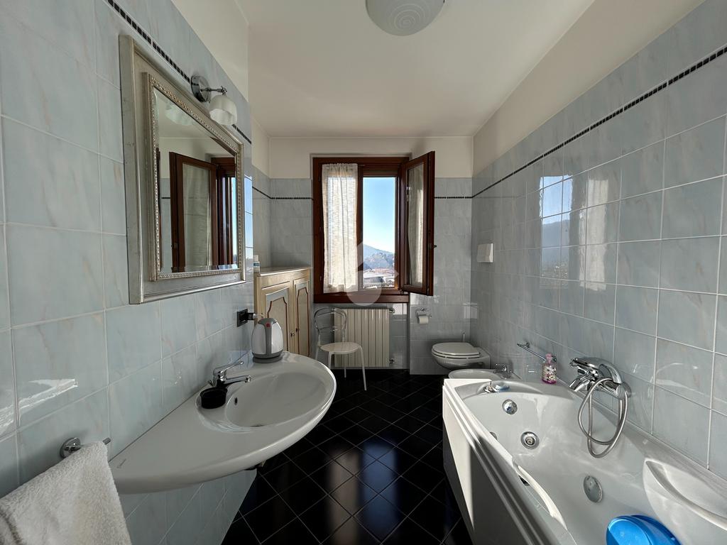 Il piano primo ospita la zona notte, composta da una camera matrimoniale con accesso sul balcone dal quale abbiamo una vista panoramica sul paese ed uno scorcio di vista lago; un bagno padronale finestrato con vasca idromassaggio, un bagno cieco con doccia e due camerette con accesso sul secondo balcone.