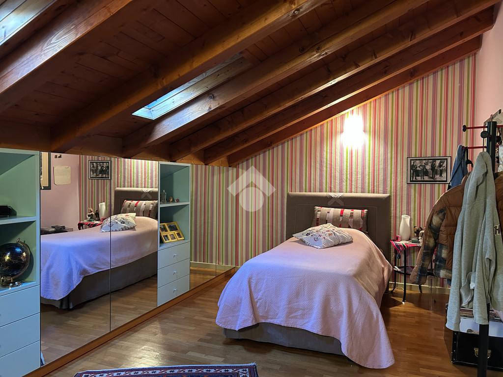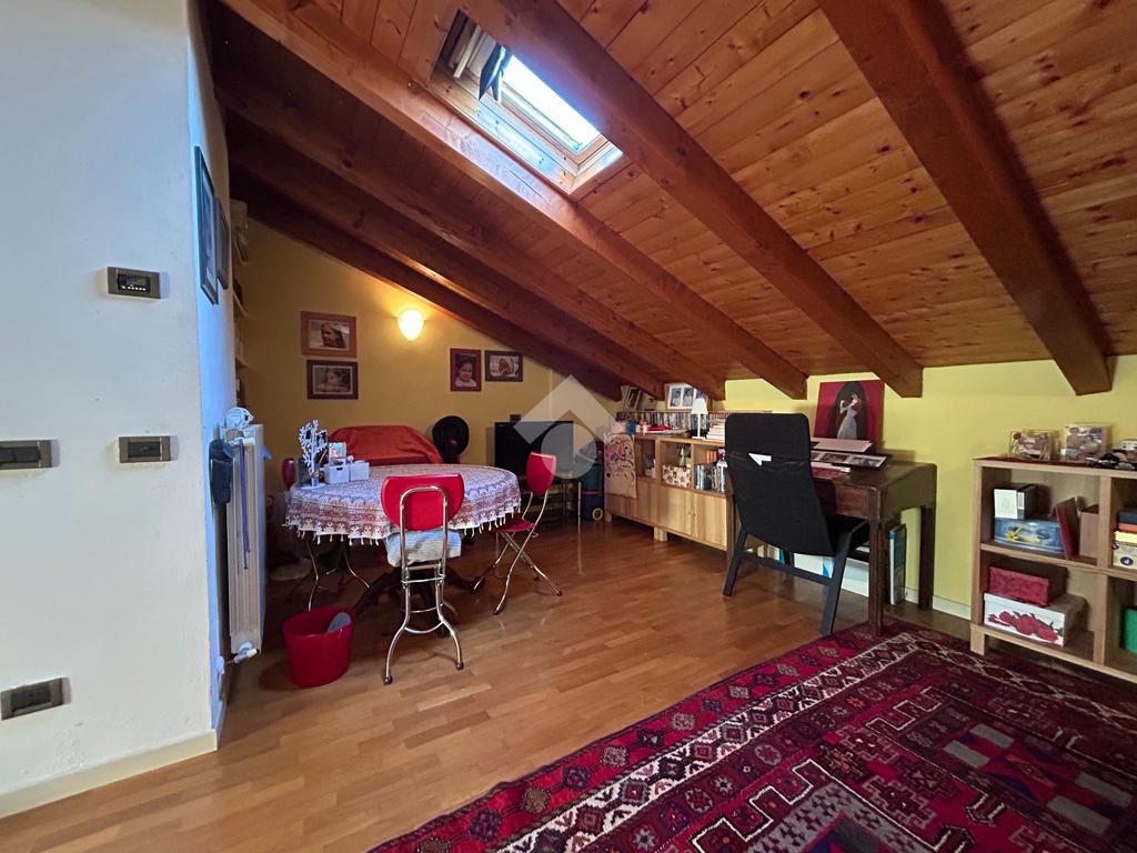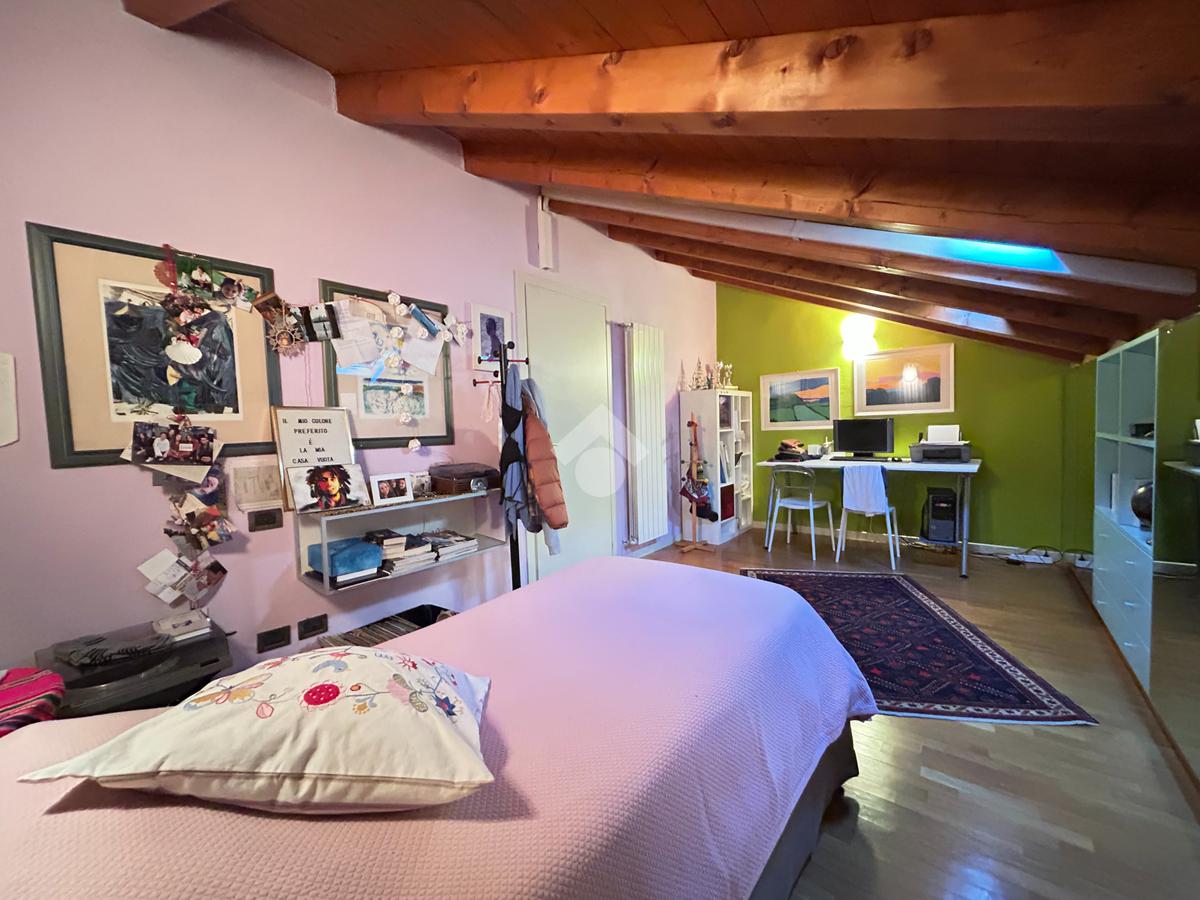 Il piano secondo accoglie un locale mansardato con area studio o spazio polifunzionale, un bagno finestrato con doccia ed una camera matrimoniale.
