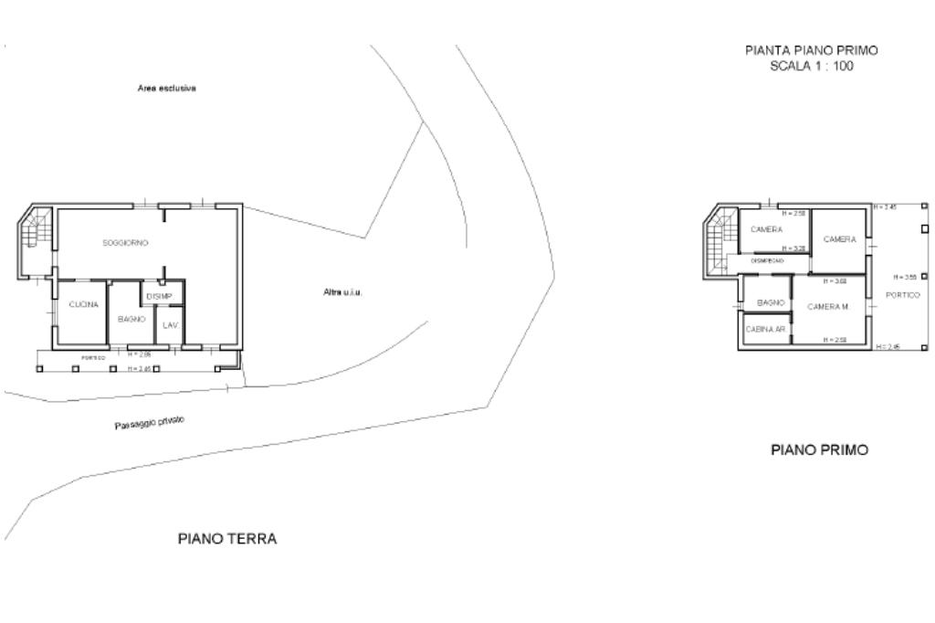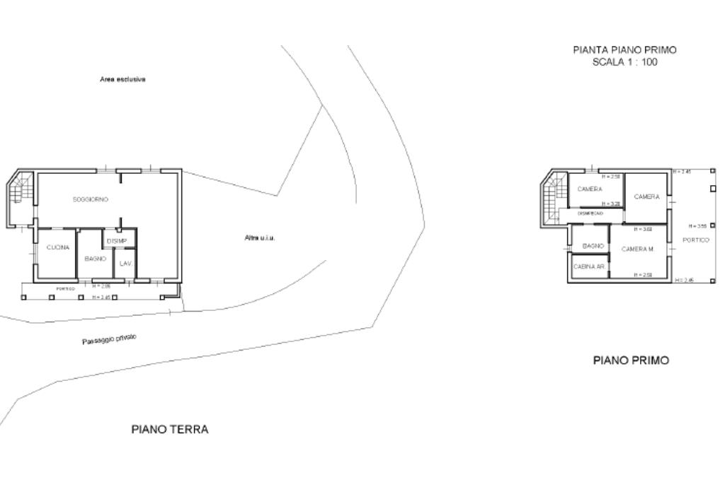 Salendo al piano superiore si trova la zona notte, composta da due camere singole e da un’ampia camera matrimoniale con cabina armadio e accesso diretto al bagno, che dispone anche di una seconda porta collegata al disimpegno per servire le altre stanze.